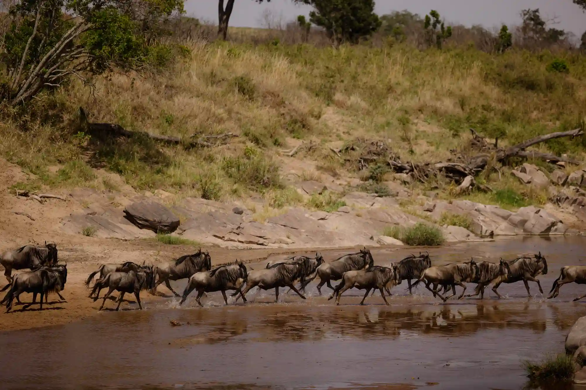 Spavamo unutar rezervata, bez čekanja na kapijama. Lokacije kampova su na samoj reci Mari. Pratimo migraciju u realnom vremenu, sa lokalnim vodičima. Male grupe, više prostora, više tišine, više prirode. Mogućnost da vidite prelazak reke iz prvog reda.